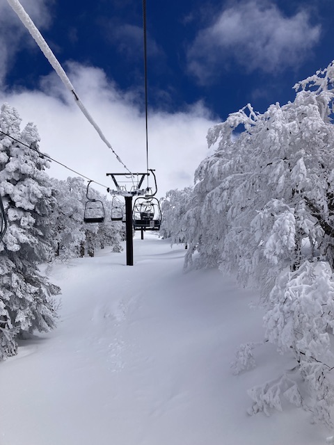 でも1月は寒かったですね。連日マイナス10度。樹氷ツアーのリフトの下り乗車は辛そうでした。あの吉村県知事も視察に見えられて、その時に限って吹雪になり、雪だらけになっていました。
